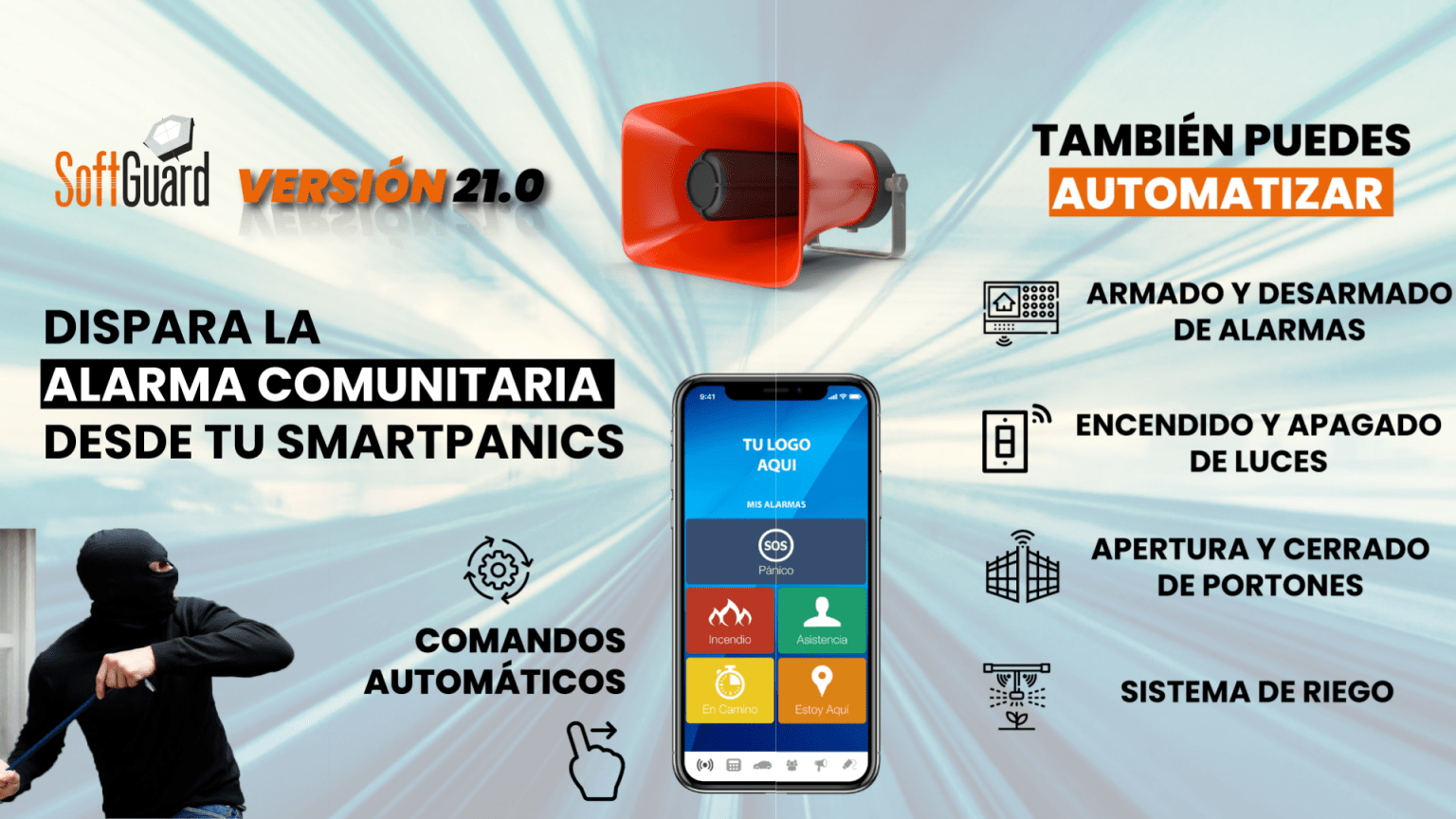 Tanto desde la central como desde SmartPanics. Por ejemplo para que los usuarios puedan hacer sonar la alarma comunitaria al presionar el botón de pánico o encender las luces.