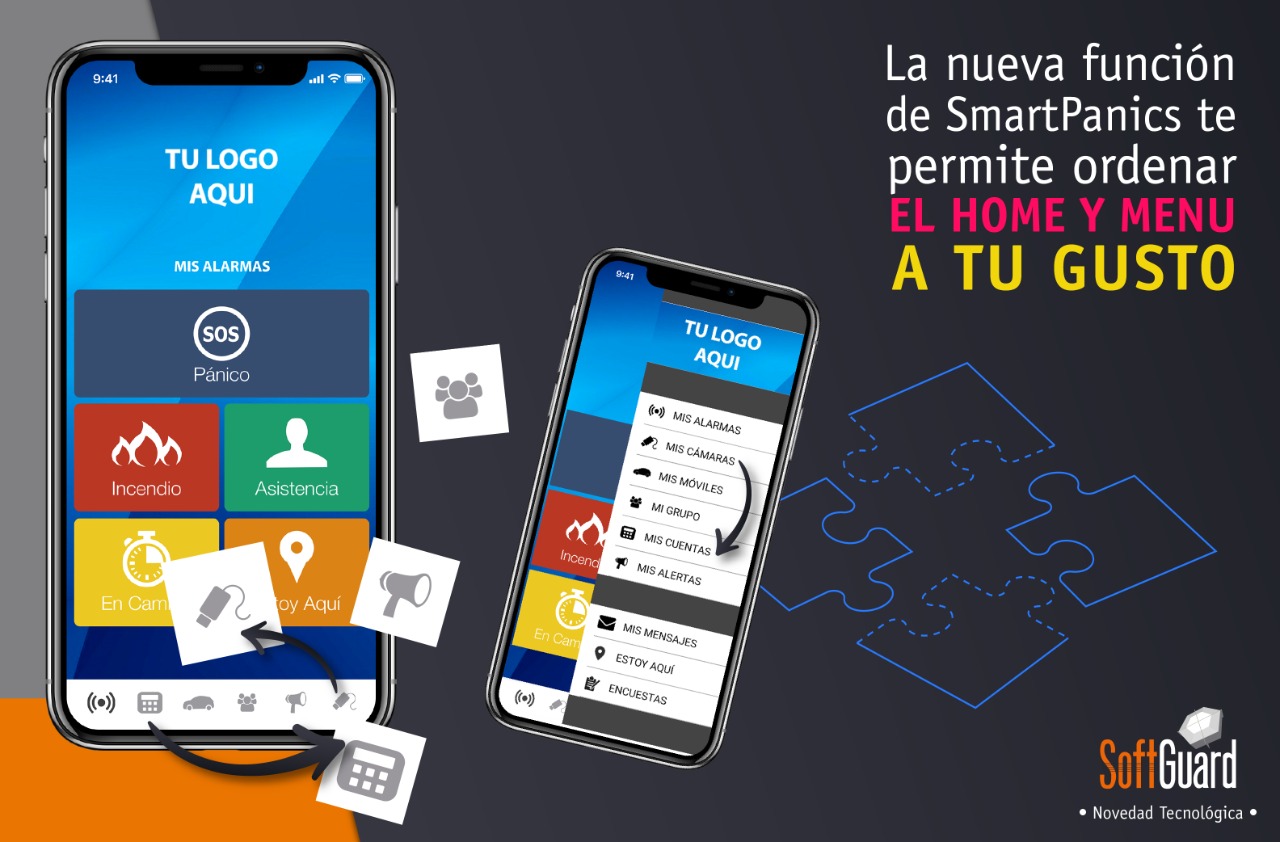 La novedad tecnológica más reciente para nuestra App SmartPanics, es que ahora permite ordenar a gusto la sección del home y menú. De esta forma, SmartPanics, ofrece la posibilidad de personalizar el menú, cada icono se podrá ocultar o mover y así dar prioridad a los servicios que desee hacer más visibles