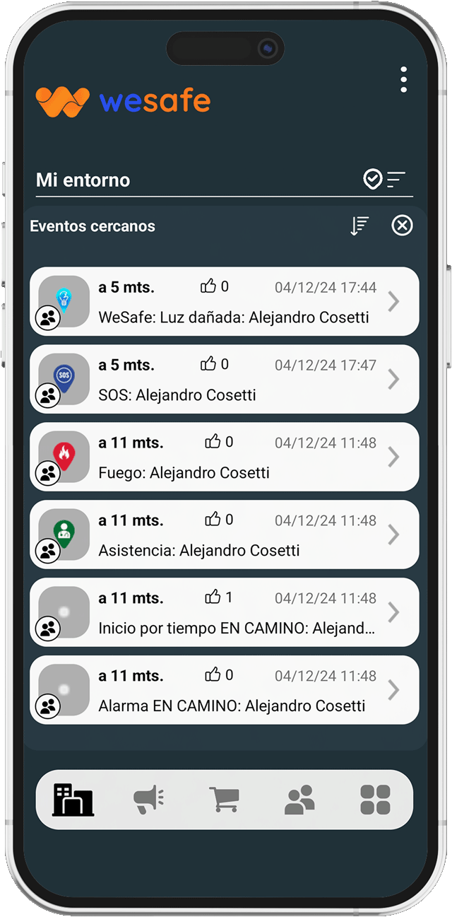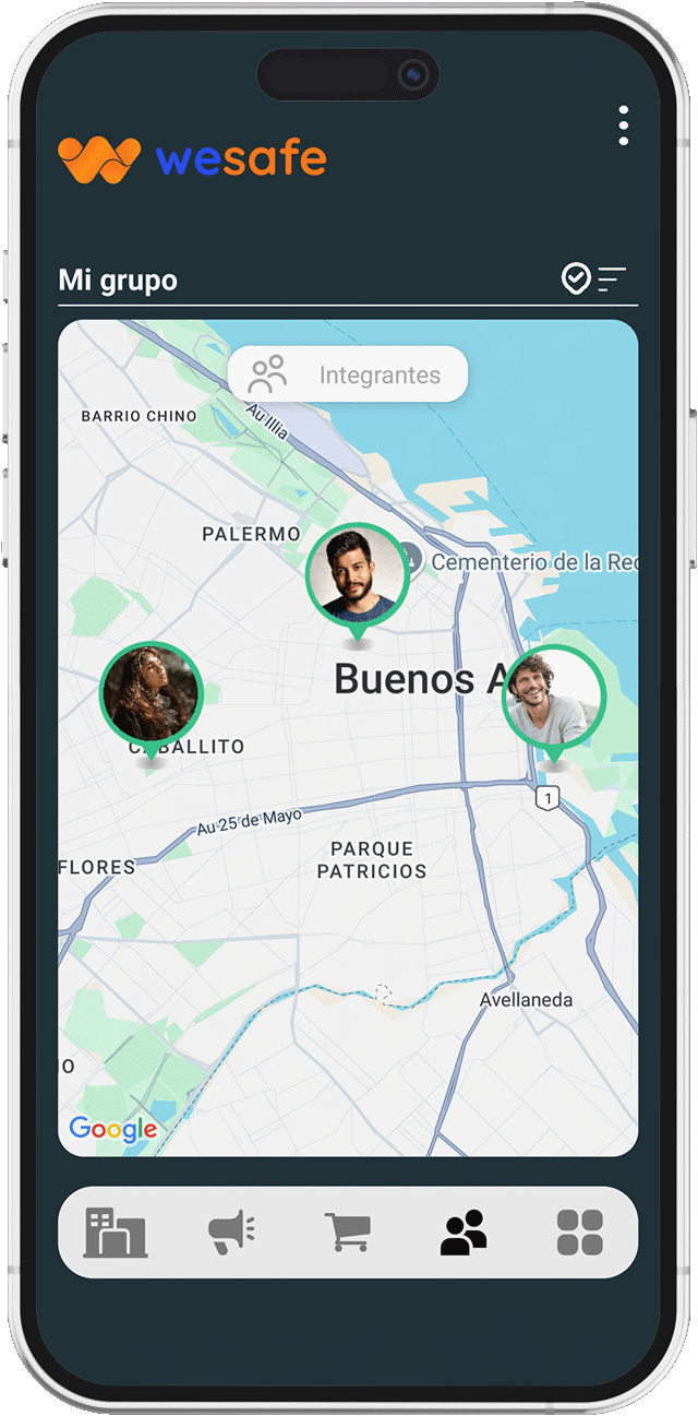 Cada usuario puede conocer en tiempo real la ubicación de sus familiares, y si han generado algún evento con la app.